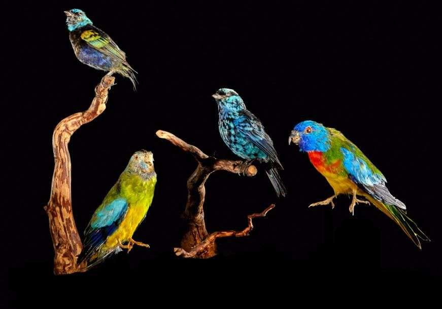 - 2 Tangara spp (NR) naturalisés sur branche et socle en bois