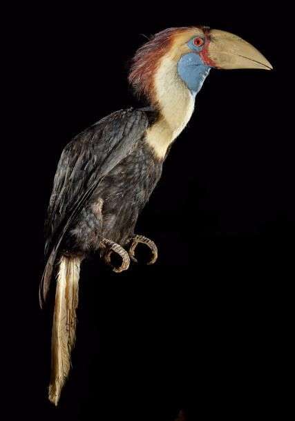 Calao à cimier (Aceros cassidix) (II/B): spécimen juvénile naturalisé sans