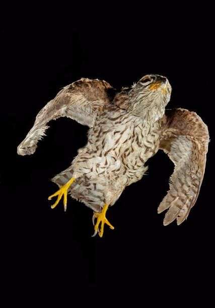 Autour des palombes (Accipiter gentilis) (II/A-CE): spécimen naturalisé en attitude de vol