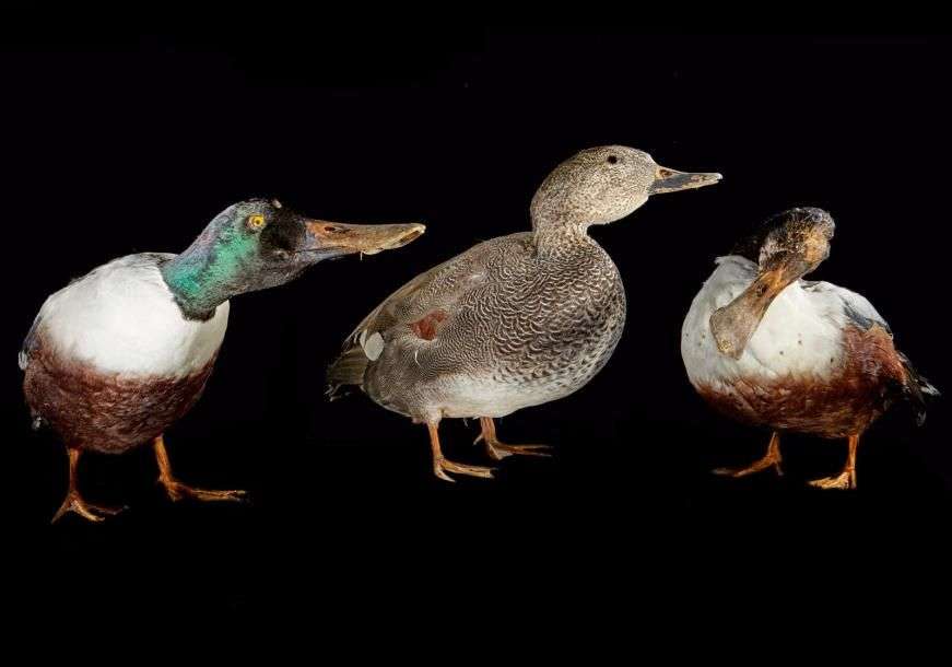 Un ensemble de 3 spécimens anciens naturalisés sur socle provisoire dont: