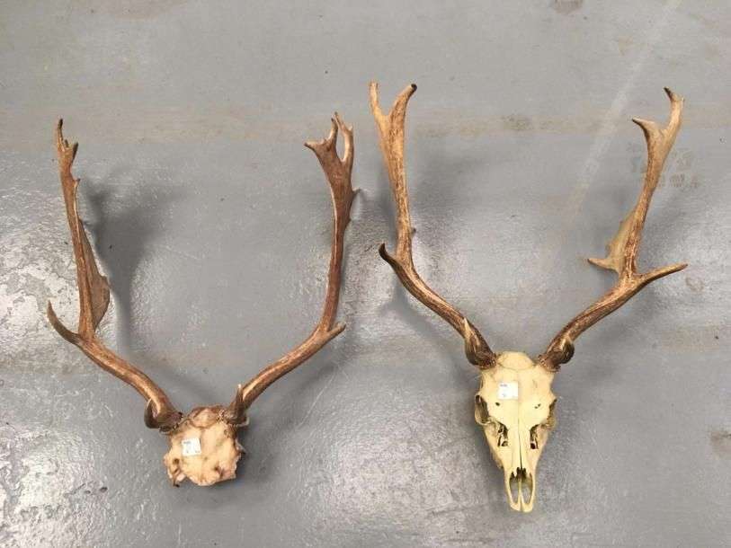 Un ensemble de 2 massacres de Daim (Dama dama) (CH) dont 1 frontal et 1 cr