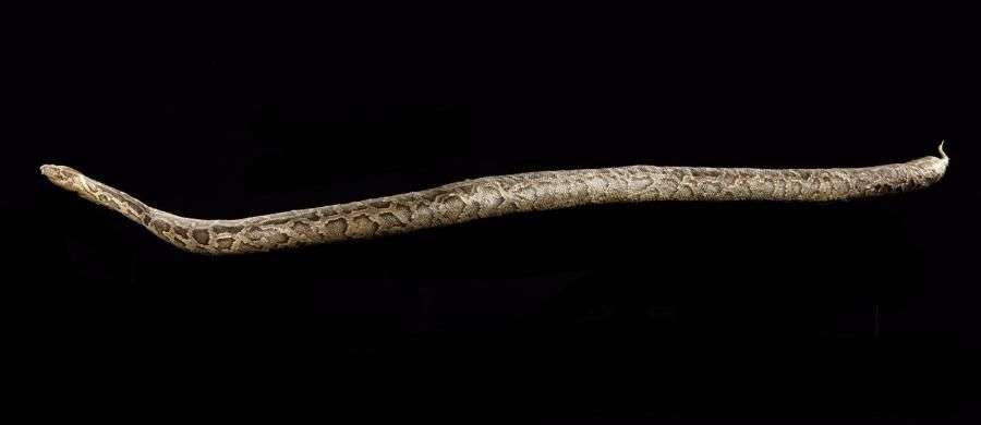 Python molure à deux bandes (Python bivittatus) (II/B): beau spécimen ancien naturalisé en entier, espèce typique du continent asiatique, idéal cabinet de curiosités