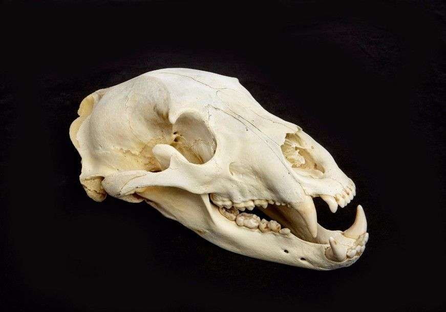 Ours noir (Ursus americanus) (II/B): crâne avec dentition et mandibule inférieure d'un spécimen prélevé au Canada en 2013