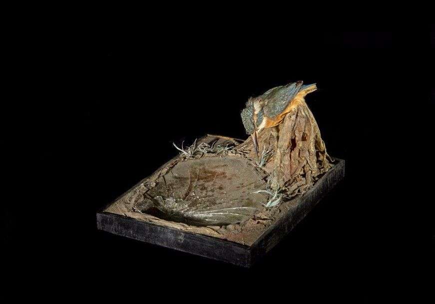 Diorama figurant un Martin-pêcheur d'Europe (Alcedo atthis) (CE) sur une m