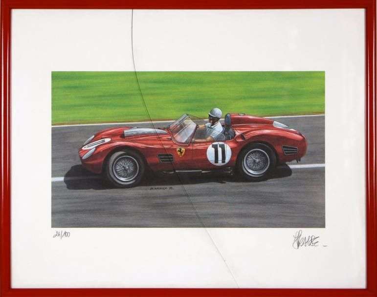 Lithographie d'une Ferrari de course (250 Testa Rossa)
