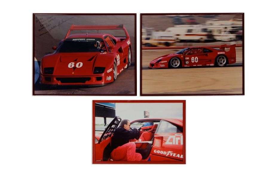 Lot de 3 photos encadrées de la Ferrari F40 LM en course: