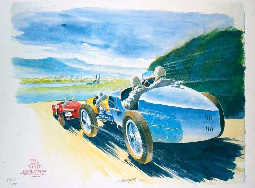 Lithographie Grand Prix Lyon-Charbonnières 1994, célébrant les 70 ans de la compétition