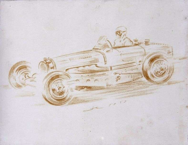 Dessin à la craie sur papier noir. Signé et daté 1955 en bas à droite.