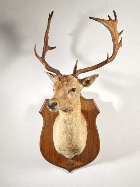 Daim (Dama dama) (CH) : tête naturalisée sur écusson avec estampille de ta