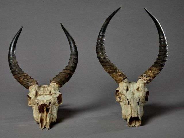 - deux crânes avec dentition sans mandibule inférieure de Cobe de Buffon (Kobus kob) (CH)