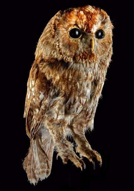 Chouette hulotte (Strix aluco) (II/A-CE) : spécimen naturalisé sur socle provisoire Longueur : 45 cm environ | Hauteur avec socle : 34 cm environ
