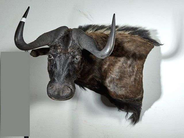 Gnou noir à queue blanche (Connochaetes gnou) (CH) : belle tête en cape collectée en Afrique du Sud, 6/2007
