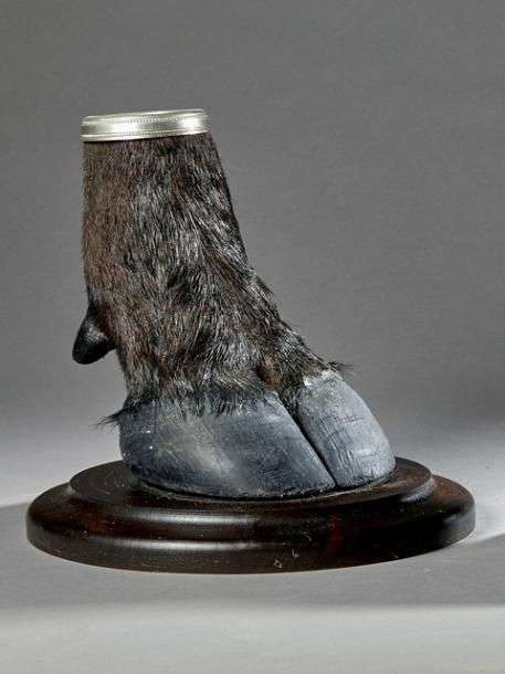 Buffle caffer (Syncerus caffer caffer) (CH) : pied monté sur plateau bois avec montage d'orfèvrerie
