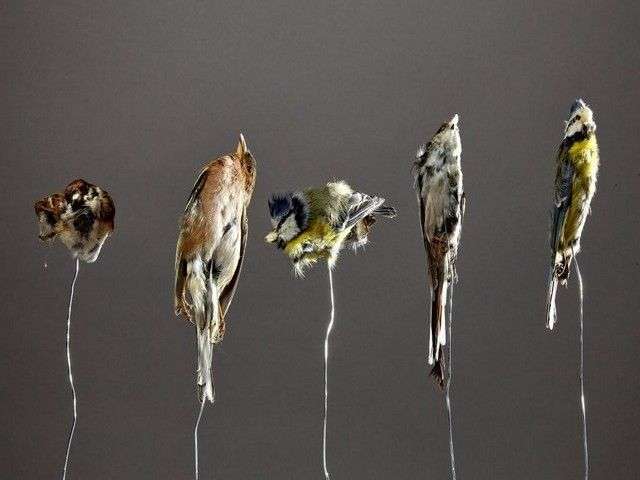 Un lot de 5 mises en peaux pour montage en taxidermie ou peaux plates d'étude dont : 1 pinson des arbres mâle (Fringilla coelebs) (CE) | 2 mésange bleue (Parus caeruleus) (CE) | 1 moineau friquet (Passer montanus) (CE)| 1 mésange à longue queue (Aegithalos caudatus) (CE)