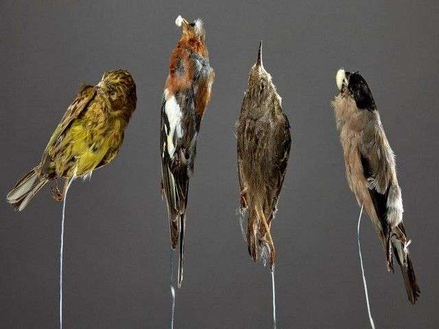 Un lot de 5 mises en peaux pour montage en taxidermie ou peaux plates d'étude dont : 1 bouvreuil pivoine femelle (Pyrrhula pyrrhula) (CE) | 1 rouge gorge (Erithacus rubecula) (CE) | 1 bruant jaune (Emberiza citrinella) (CE) | 1 pinson des arbres mâle (Fringilla coelebs) (CE)