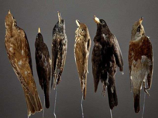 Un lot de 6 mises en peaux pour montage en taxidermie ou peaux plates d'étude dont : 2 merle noir mâle (Turdus merula) (CH) | 1 grive litorne (Turdus pilaris) (CH) | 1 étourneau sansonnet (Sturnus vulgaris) (CH) | 1 grive draine (Turdus viscivorus) (CH) | 1 grive musicienne (Turdus philomelos) (CH)