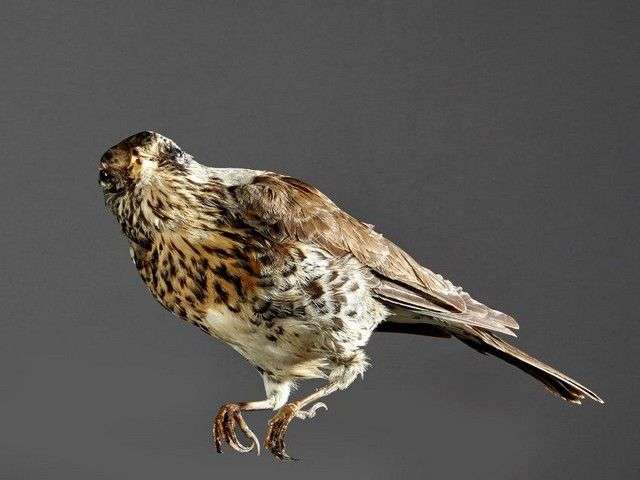 Un lot de 7 spécimens naturalisés dont : 2 grive draine (Turdus viscivorus