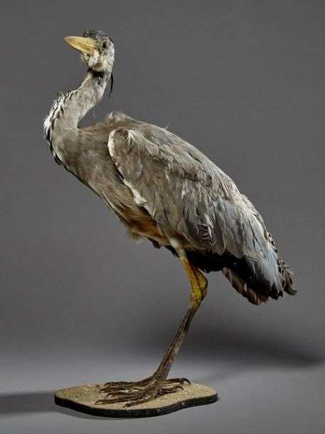 Héron cendré (Ardea cinerea) (CE) : spécimen naturalisé en entier sur un p