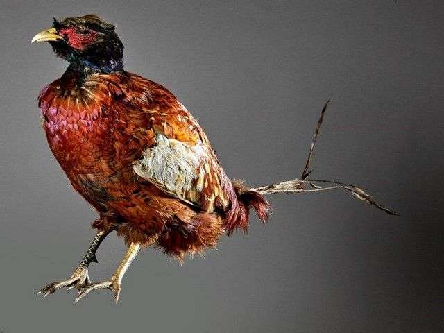 Un lot de 5 mises en peaux pour montage en taxidermie ou peaux plates d'étude dont : 2 faisans vénérés (Syrmaticus reevesii) (CH) | 1 couple de faisan commun (Phasianus colchicus) (CH) | 1 Ardeidae exotique spp