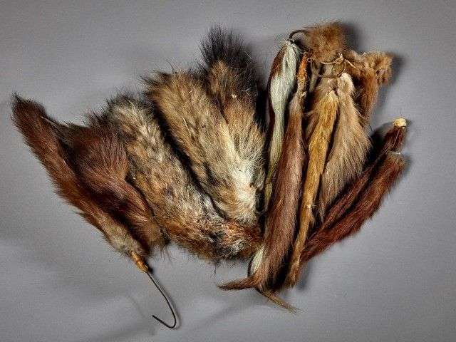 Un lot de queues de mammifères dont écureuil roux (Sciurus vulgaris) (CE)