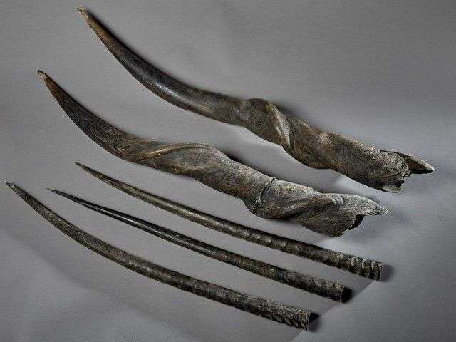 Un ensemble de divers étuis cornés dont Elan de Derby (Taurotragus derbian