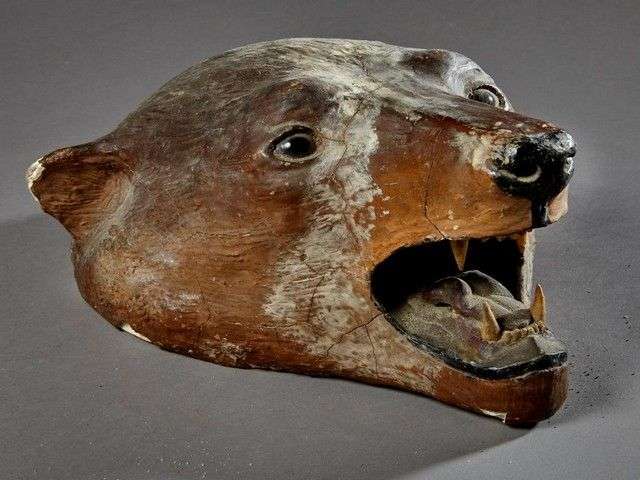 Tête réalisée en plâtre figurant un ours brun, pièce ancienne d'un beau réalisme Collection Jacques BARBONI