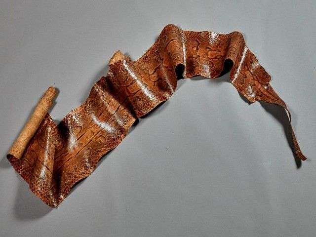 Python de seba (Python sebae) (II/B) pré-convention : spécimen présenté en peau plate, manque la partie céphalique (tête) Longueur : plus de 3m | Pour une sortie de l'UE, un CITES de ré-export sera nécessaire celui-ci étant à la charge du futur acquéreur