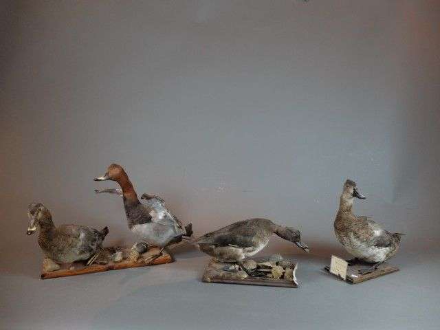 Lot de 4 spécimens naturalisés en entier comprenant : 2 Fuligule morillon