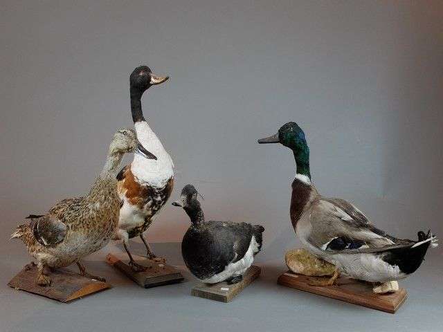 Lot de 4 spécimens naturalisés en entier comprenant : Canard colvert (Anas