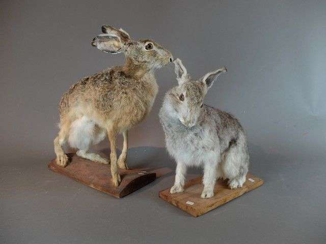 Lot de 4 spécimens naturalisés en entier dont : Lièvre d'Europe (Lepus eur