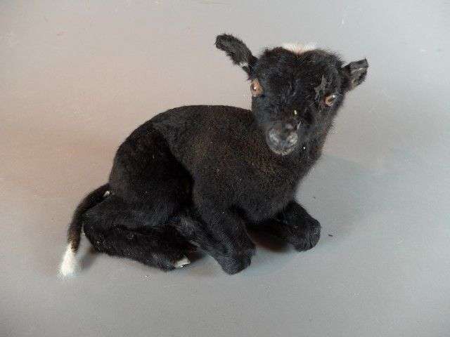 Mouton domestique (Ovis aries) (D) : spécimen juvénile naturalisé en position couchée