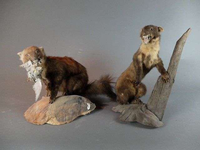 Lot de 4 spécimens naturalisés en entier : Martre des pins (Martes martes)