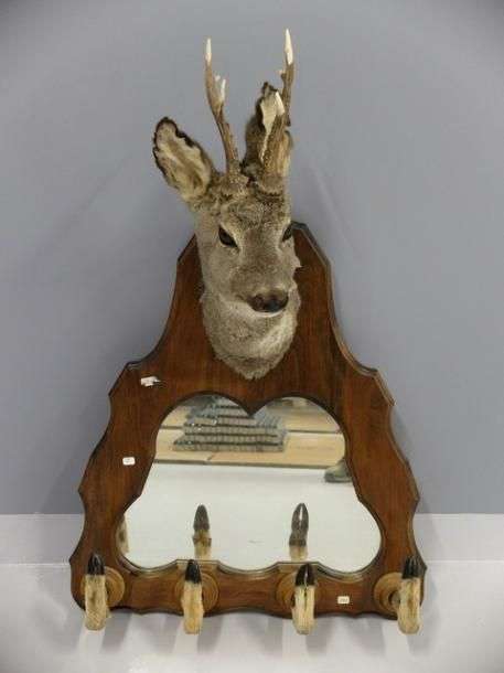 On joint une tête de Chevreuil d'Europe (Capreolus capreolus) (CH) sur écusson lyre avec miroir inséré sur la partie centrale et pattes servant de porte-manteau