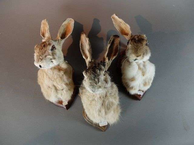 Lot de 3 têtes naturalisées de Lièvre d'Europe (Lepus europaeus) (CE) sur