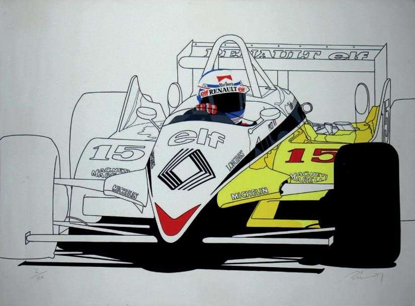 Lithographie figurant la Formule 1 RENAULT d'Alain PROST Edition limitée et numérotée 2/310
