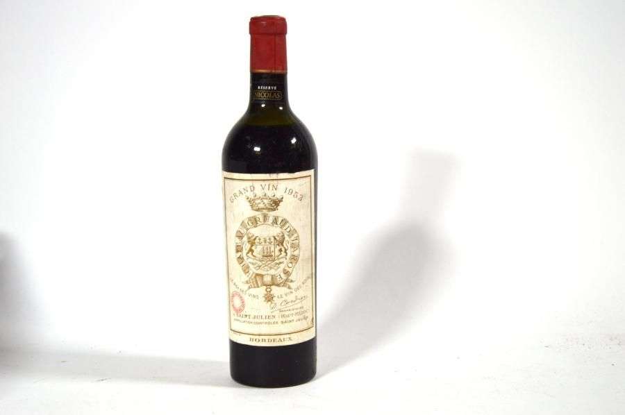 1 B CHÂTEAU GRUAUD LAROSE (H.E.-| e.l.a| tampon + capsule Nicolas très légèrement gondolée) GCC2 St Julien 1953