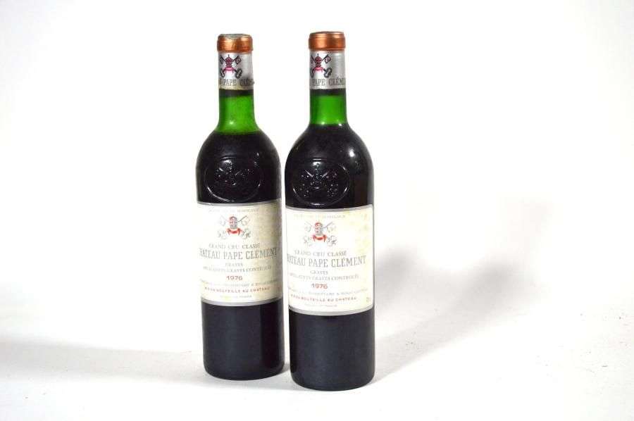 2 B CH╢TEAU PAPE CLEMENT (1 B.G| 1 H.E| e.t| 1 c.c. et plissée) CC Graves 1976