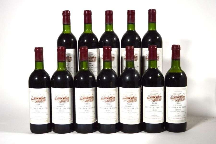12 B CHÂTEAU LES DEUX MOULINS (9 T.L.B. ou mieux| 2 H.E| 1 M.E| c.s. légères) Médoc 1982