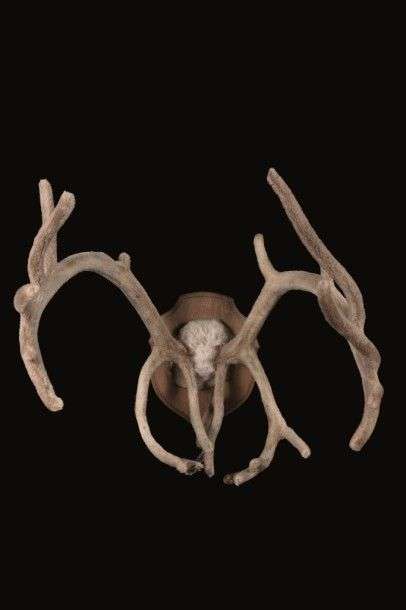Renne (Rangifer tarandus) (CH) : frontal avec belle envergure en velours monté sur écusson