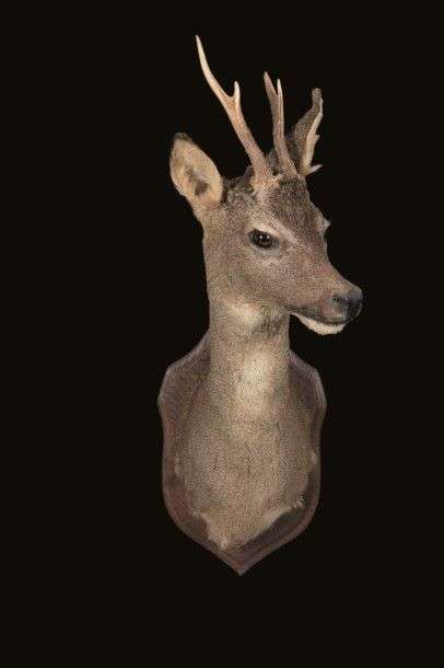 Chevreuil d’Europe (Capreolus capreolus) (CH) : tête naturalisée sur écuss