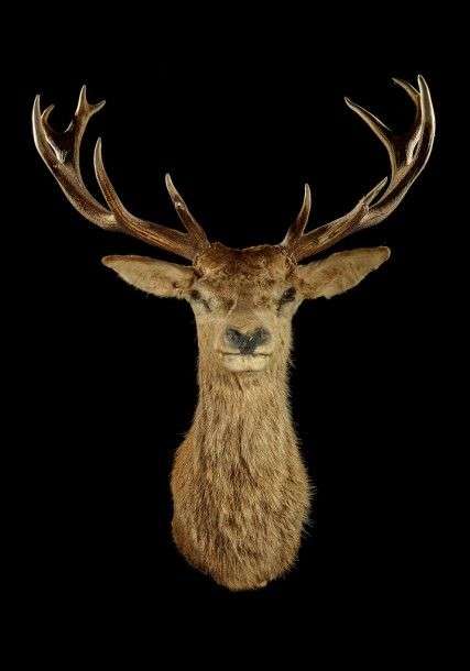 - 1 tête en cape d’un spécimen mâle portant 14 cors, accidents en l’état