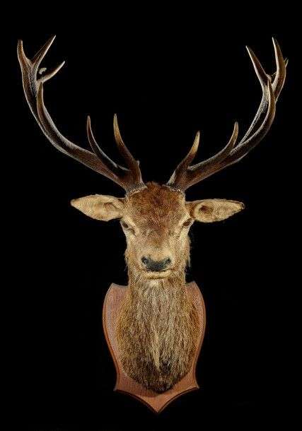 Cerf élaphe (Cervus elaphus) (CH) : belle tête naturalisée d’un spécimen p