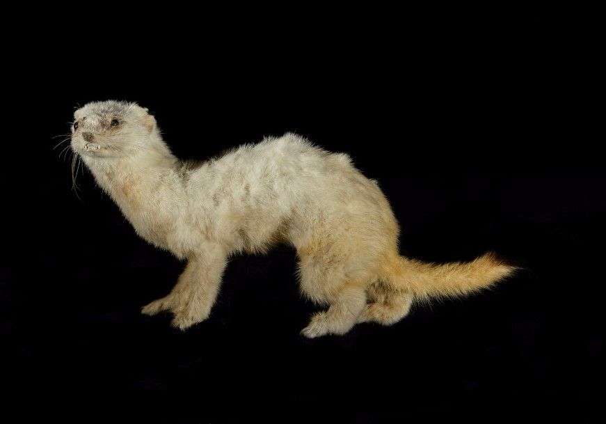 Hermine (Mustela erminea) (CH) : spécimen en phase hivernale blanche naturalisé sans socle