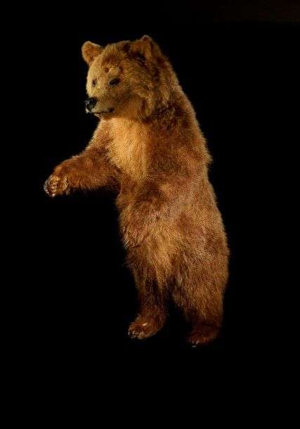 Ours brun (Ursus arctos) (II/A) : spécimen juvénile naturalisé en position