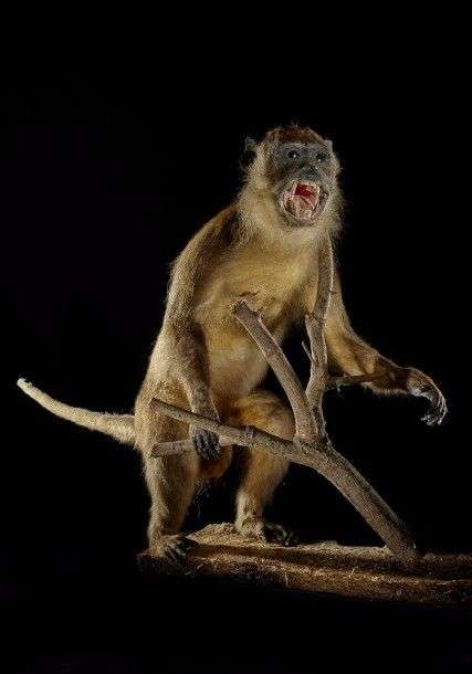 Primate spp (II/B) : spécimen naturalisé gueule ouverte en position de bip