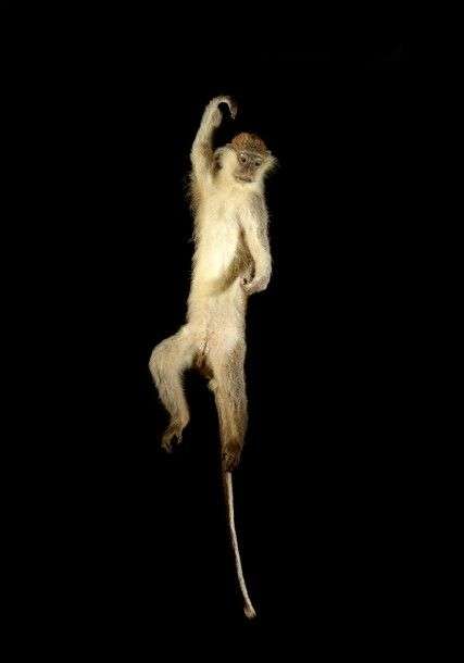 Grivet ou singe vert (Chlorocebus aethiops) (II/B) : spécimen naturalisé en position suspendue