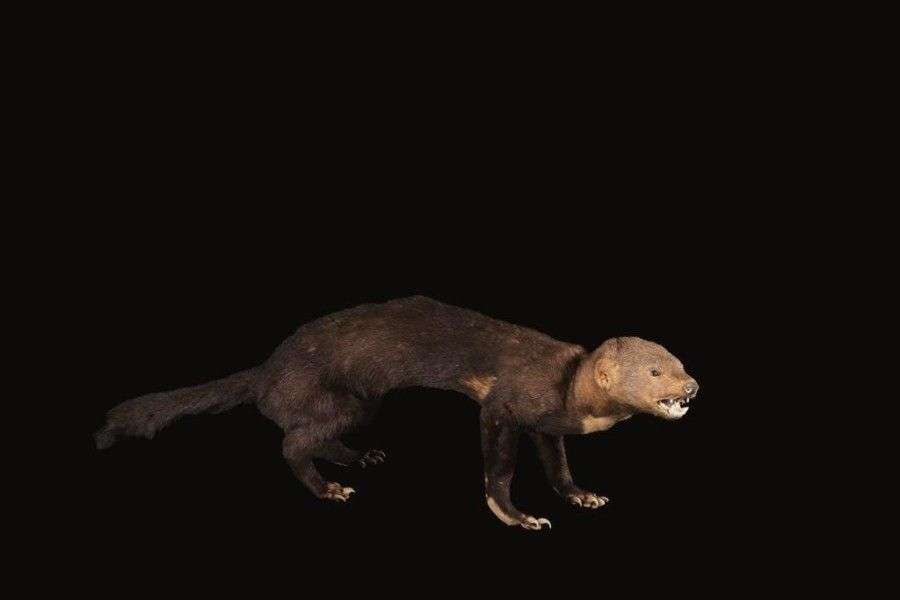Tayra (Eira barbara) (III/C-CE) : spécimen naturalisé gueule ouverte avec