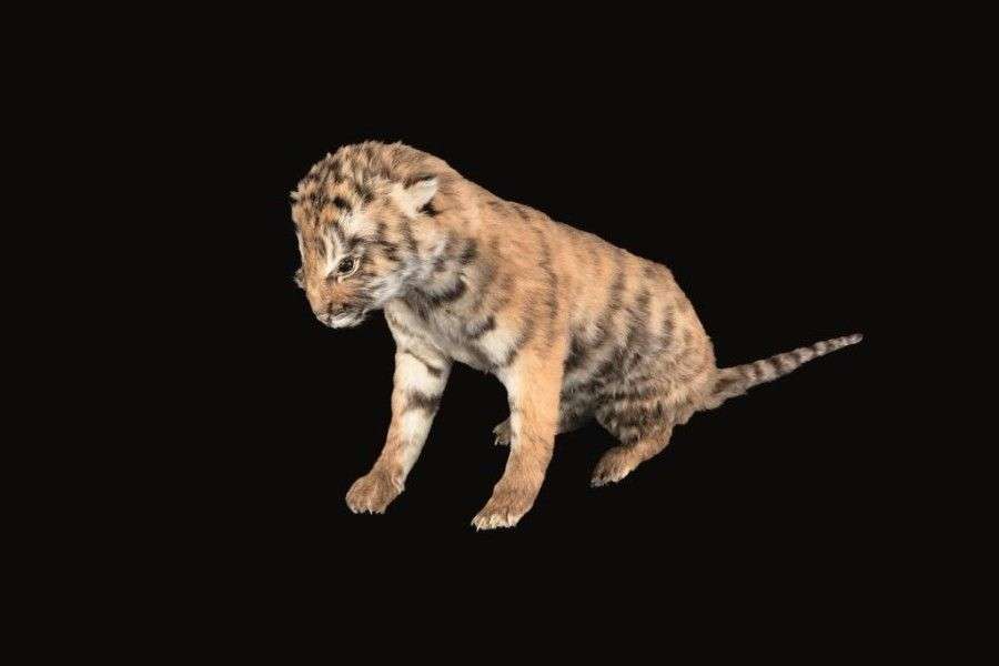 Tigre (Panthera tigris) (I/A) : spécimen juvénile naturalisé sans socle en position assise