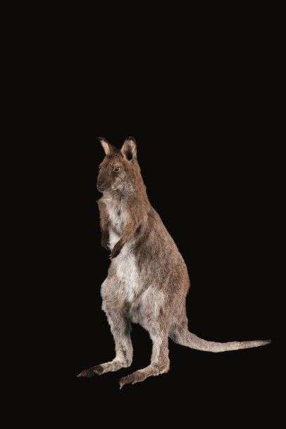Wallaby de Bennett (Macropus rufogriseus) (NR) : spécimen sub-adulte naturalisé en station bipède sans socle