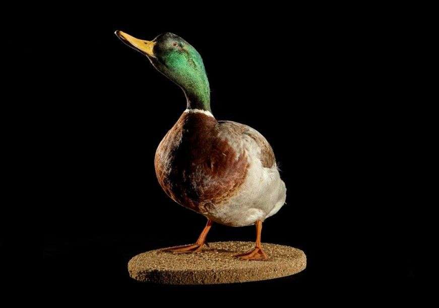 Canard colvert (Anas platyrhynchos) (CH) : spécimen naturalisé sur socle s